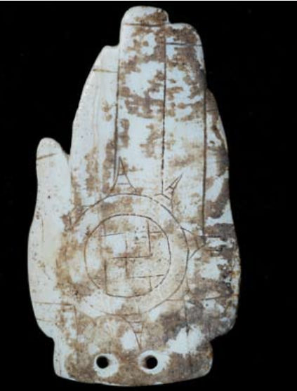 is made of brown steatite and is probablyearly to mid-Mississippian (900